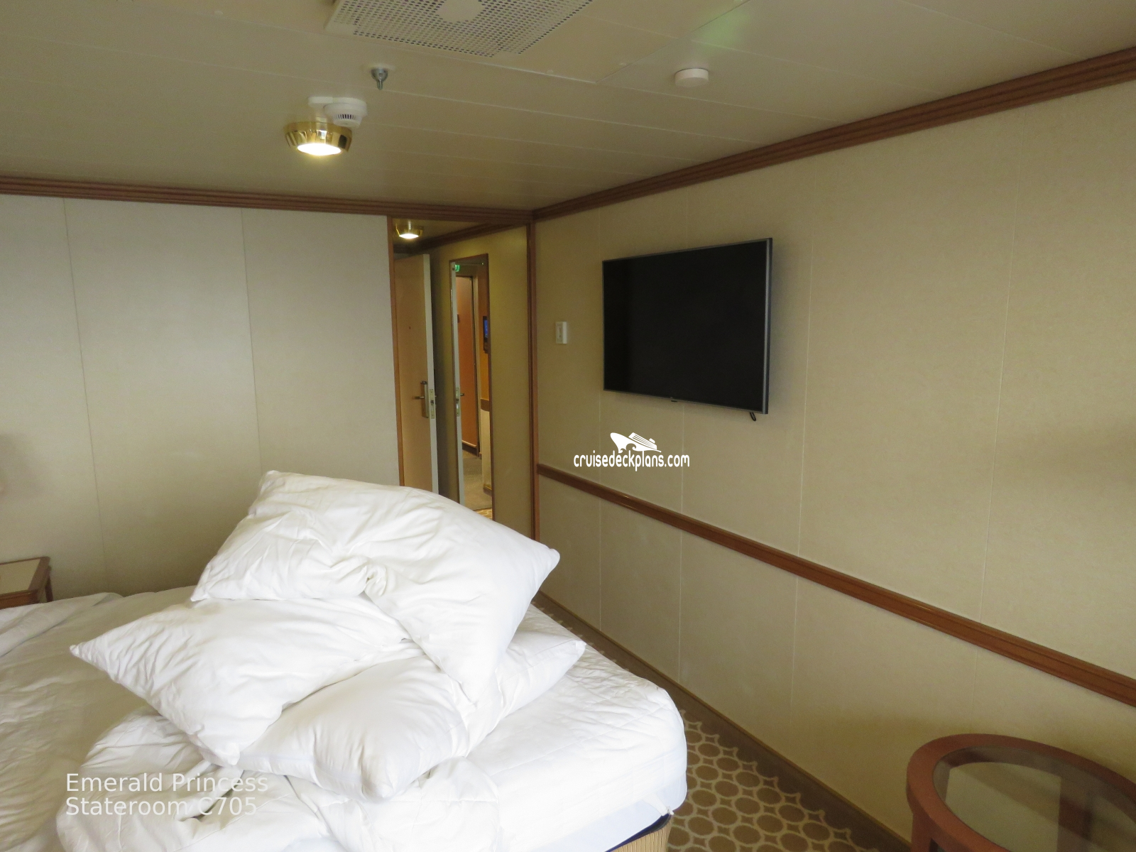 These are some actual stateroom pictures of cabin C705 on the Emerald Princess. Click on images below for larger image and slide show. The slide show will show the date the picture was uploaded to out website. This date is useful because Emerald Princess typically will update its cabins every three to five years with new carpeting and decor. We will keep older pictures for you to compare the more recent photos to. The pictures are sorted by the newest ones first. Most of our cabin pictures are contributed by actual cruisers. We pay 50 cents for any that we use. You can upload your cabin photos HERE. Afer you are done looking at these photos and/or the videos below you can click here to select another cabin.