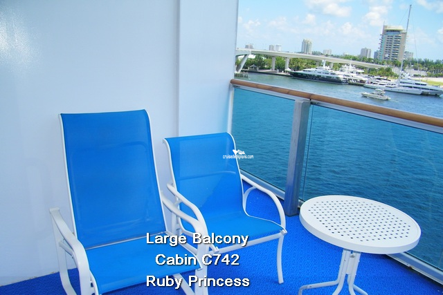 Ruby Princess Balcony cabin number C742 ACTUAL videos and/or pictures, floor plans, diagrams and detailed features including a deck image of the actual location on the Ruby Princess ship for cabin C742. Cruisedeckplans.com has 73,566 different (staterooms) cabins that have actual cabin pictures and/or cabin videos taken by real cruisers. That is plenty of coverage to provide you with a good sampling of all the different cabins on cruise ships. Take a minute and notice the breadcrumb menu above. This is a quick easy way to navigate our website. You can also use the menu above for menu items specific to the Ruby Princess cruise ship.