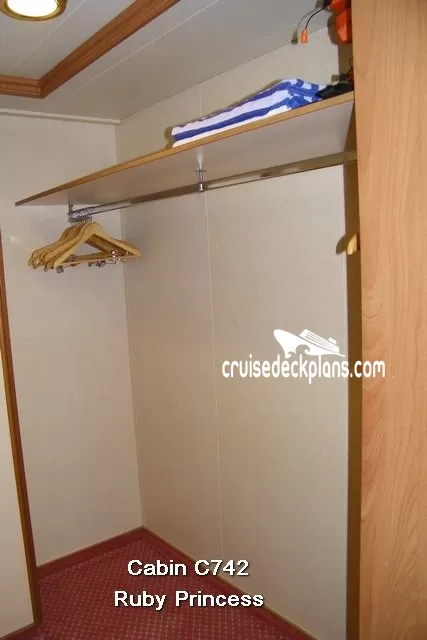 These are some actual stateroom pictures of cabin C742 on the Ruby Princess. Click on images below for larger image and slide show. The slide show will show the date the picture was uploaded to out website. This date is useful because Ruby Princess typically will update its cabins every three to five years with new carpeting and decor. We will keep older pictures for you to compare the more recent photos to. The pictures are sorted by the newest ones first. Most of our cabin pictures are contributed by actual cruisers. We pay 50 cents for any that we use. You can upload your cabin photos HERE. Afer you are done looking at these photos and/or the videos below you can click here to select another cabin.