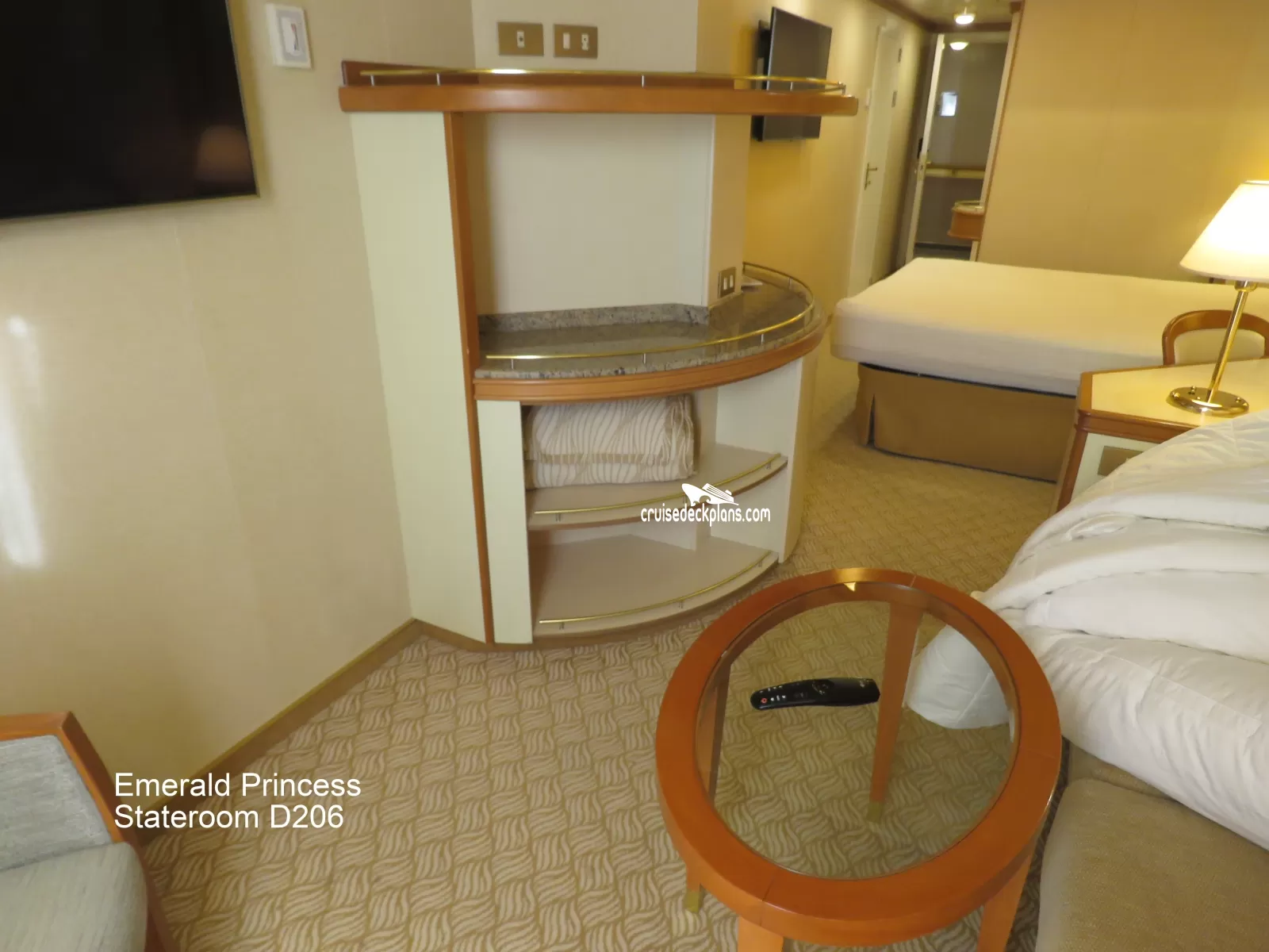 Emerald Princess Mini-Suite cabin number D206 ACTUAL videos and/or pictures, floor plans, diagrams and detailed features including a deck image of the actual location on the Emerald Princess ship for cabin D206. Cruisedeckplans.com has 73,950 different (staterooms) cabins that have actual cabin pictures and/or cabin videos taken by real cruisers. That is plenty of coverage to provide you with a good sampling of all the different cabins on cruise ships. Take a minute and notice the breadcrumb menu above. This is a quick easy way to navigate our website. You can also use the menu above for menu items specific to the Emerald Princess cruise ship.
