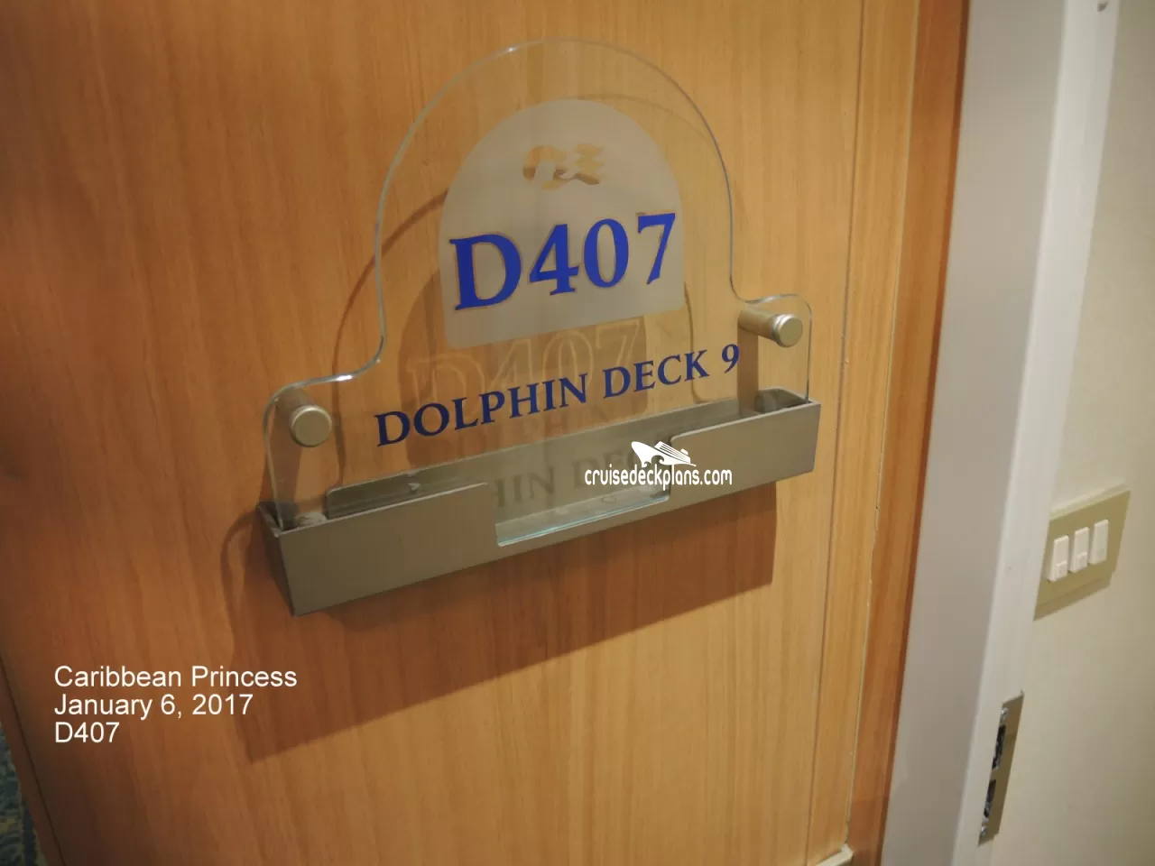 These are some actual stateroom pictures of cabin D407 on the Caribbean Princess. Click on images below for larger image and slide show. The slide show will show the date the picture was uploaded to out website. This date is useful because Caribbean Princess typically will update its cabins every three to five years with new carpeting and decor. We will keep older pictures for you to compare the more recent photos to. The pictures are sorted by the newest ones first. Most of our cabin pictures are contributed by actual cruisers. We pay 50 cents for any that we use. You can upload your cabin photos HERE. Afer you are done looking at these photos and/or the videos below you can click here to select another cabin.