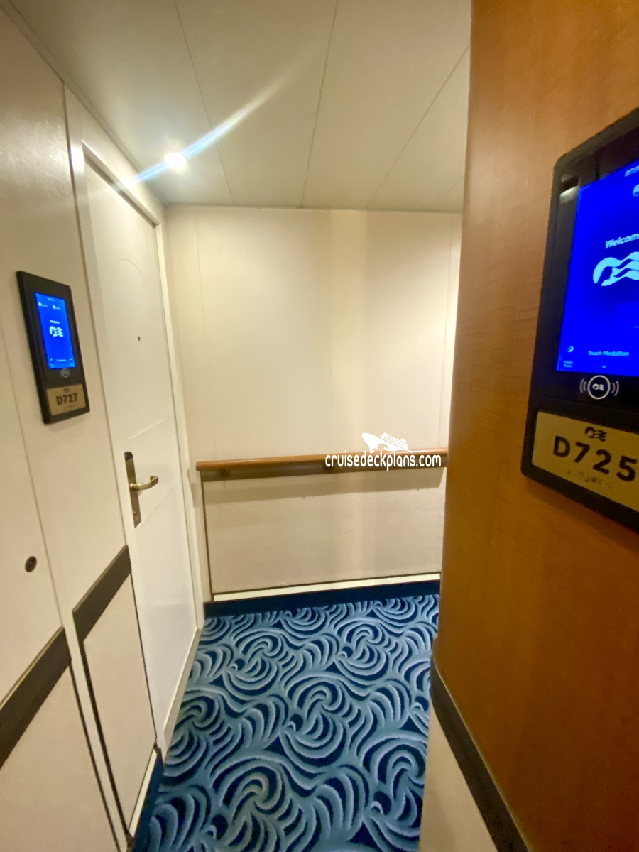 Regal Princess Deluxe Balcony cabin number D725 ACTUAL videos and/or pictures, floor plans, diagrams and detailed features including a deck image of the actual location on the Regal Princess ship for cabin D725. Cruisedeckplans.com has 75,993 different (staterooms) cabins that have actual cabin pictures and/or cabin videos taken by real cruisers. That is plenty of coverage to provide you with a good sampling of all the different cabins on cruise ships. Take a minute and notice the breadcrumb menu above. This is a quick easy way to navigate our website. You can also use the menu above for menu items specific to the Regal Princess cruise ship.