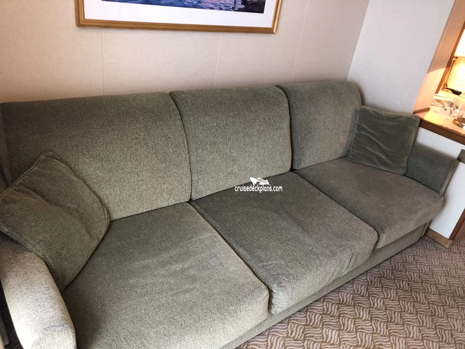 Emerald Princess Mini-Suite cabin number D733 ACTUAL videos and/or pictures, floor plans, diagrams and detailed features including a deck image of the actual location on the Emerald Princess ship for cabin D733. Cruisedeckplans.com has 74,036 different (staterooms) cabins that have actual cabin pictures and/or cabin videos taken by real cruisers. That is plenty of coverage to provide you with a good sampling of all the different cabins on cruise ships. Take a minute and notice the breadcrumb menu above. This is a quick easy way to navigate our website. You can also use the menu above for menu items specific to the Emerald Princess cruise ship.