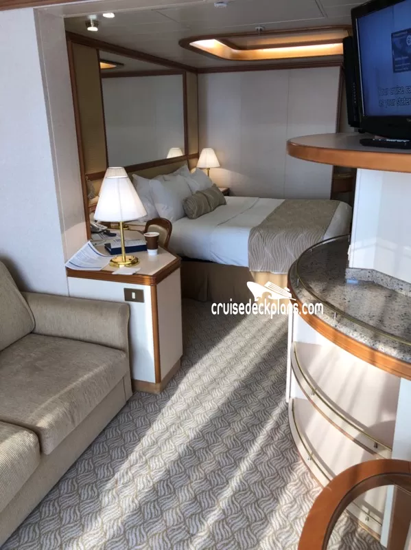 Ruby Princess Mini-Suite cabin number D733 ACTUAL videos and/or pictures, floor plans, diagrams and detailed features including a deck image of the actual location on the Ruby Princess ship for cabin D733. Cruisedeckplans.com has 73,521 different (staterooms) cabins that have actual cabin pictures and/or cabin videos taken by real cruisers. That is plenty of coverage to provide you with a good sampling of all the different cabins on cruise ships. Take a minute and notice the breadcrumb menu above. This is a quick easy way to navigate our website. You can also use the menu above for menu items specific to the Ruby Princess cruise ship.
