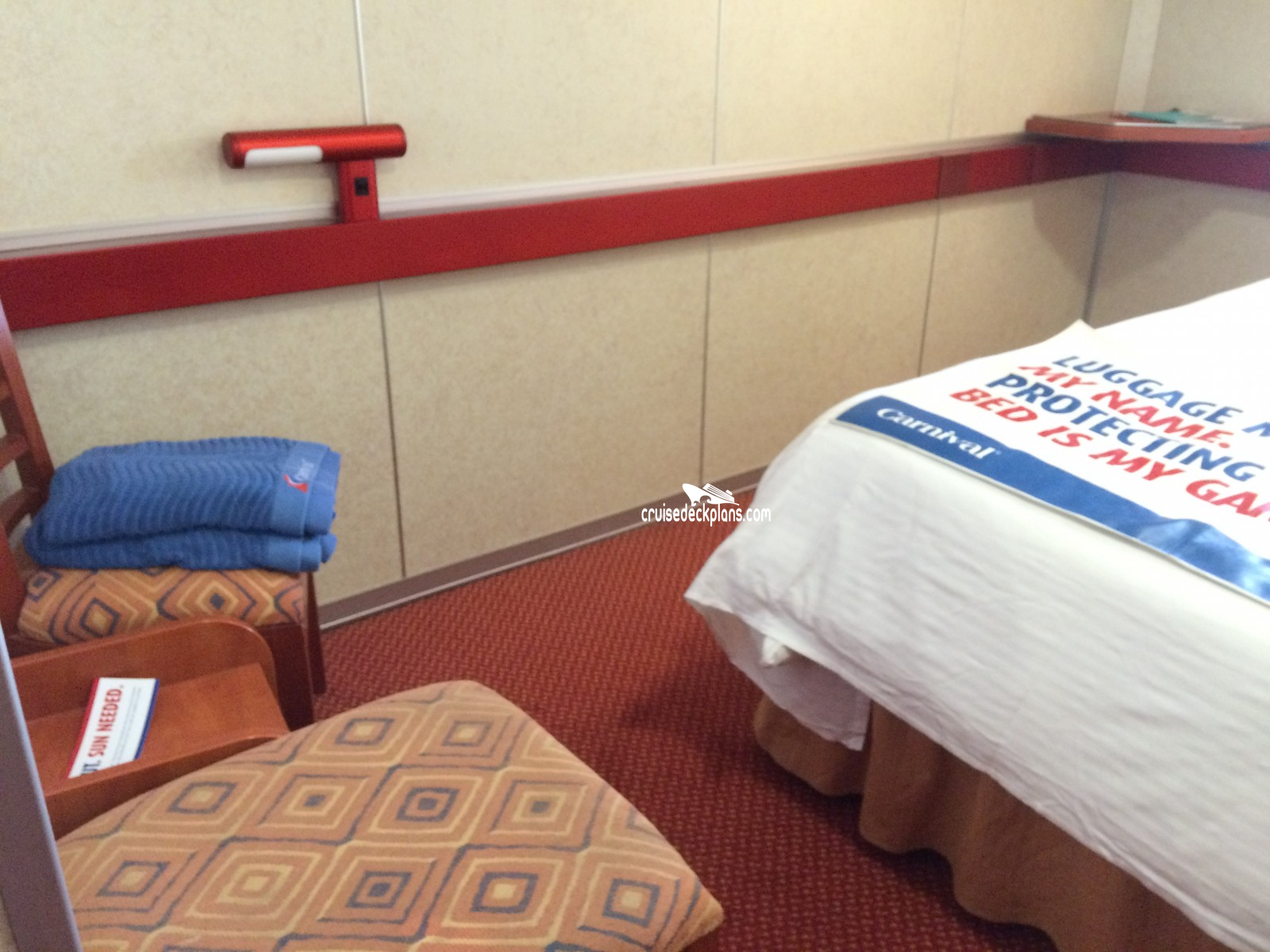 Carnival Inspiration Interior cabin number E1 ACTUAL videos and/or pictures, floor plans, diagrams and detailed features including a deck image of the actual location on the Carnival Inspiration ship for cabin E1. Cruisedeckplans.com has 74,949 different (staterooms) cabins that have actual cabin pictures and/or cabin videos taken by real cruisers. That is plenty of coverage to provide you with a good sampling of all the different cabins on cruise ships. Take a minute and notice the breadcrumb menu above. This is a quick easy way to navigate our website. You can also use the menu above for menu items specific to the Carnival Inspiration cruise ship.