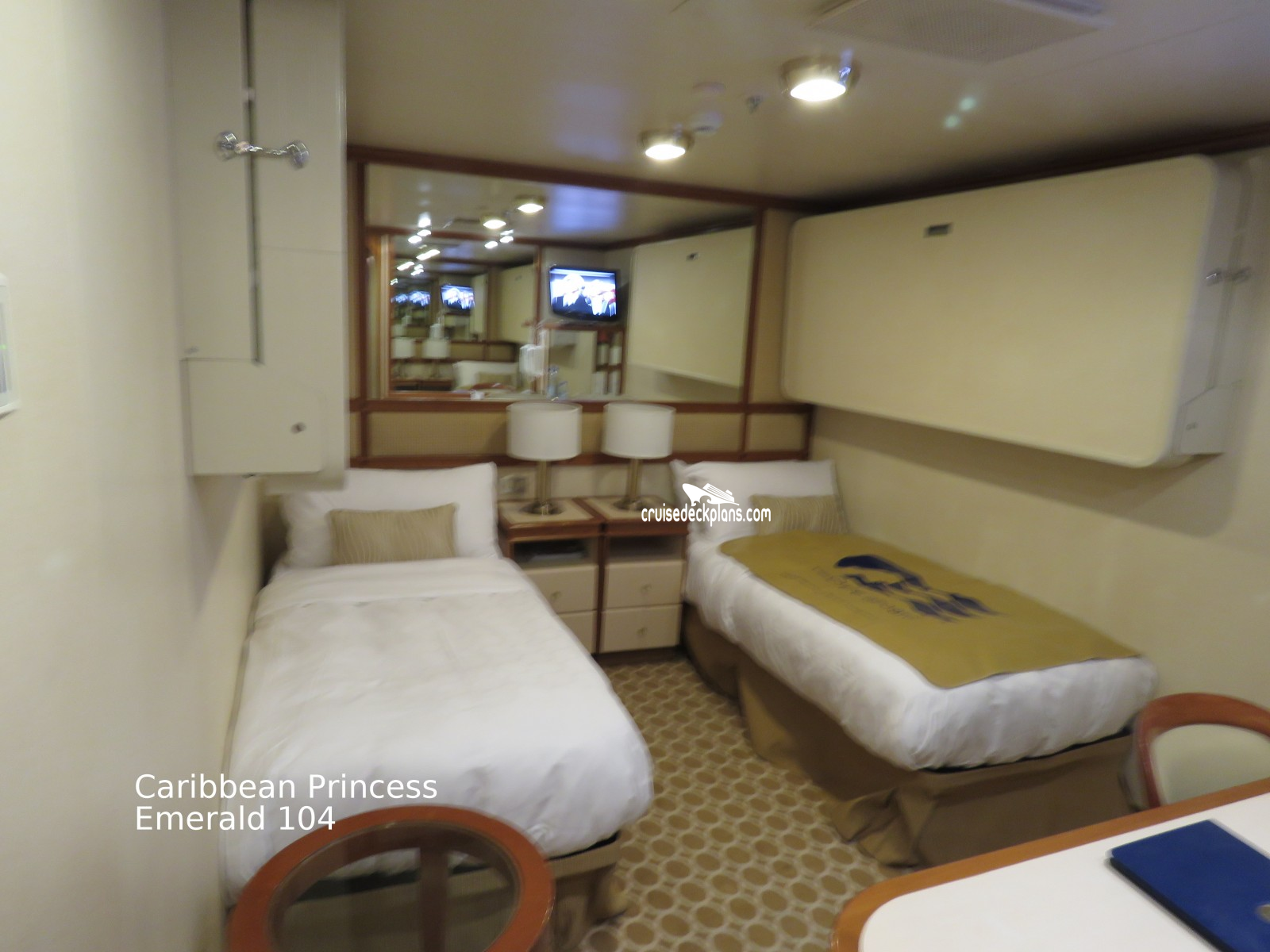 Caribbean Princess Interior cabin number E104 ACTUAL videos and/or pictures, floor plans, diagrams and detailed features including a deck image of the actual location on the Caribbean Princess ship for cabin E104. Cruisedeckplans.com has 74,245 different (staterooms) cabins that have actual cabin pictures and/or cabin videos taken by real cruisers. That is plenty of coverage to provide you with a good sampling of all the different cabins on cruise ships. Take a minute and notice the breadcrumb menu above. This is a quick easy way to navigate our website. You can also use the menu above for menu items specific to the Caribbean Princess cruise ship.