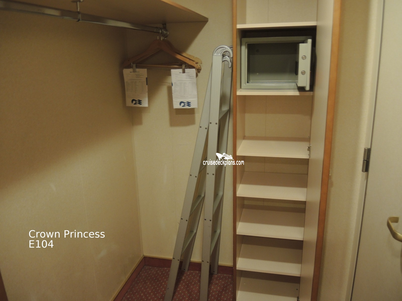 Crown Princess Interior cabin number E104 ACTUAL videos and/or pictures, floor plans, diagrams and detailed features including a deck image of the actual location on the Crown Princess ship for cabin E104. Cruisedeckplans.com has 73,937 different (staterooms) cabins that have actual cabin pictures and/or cabin videos taken by real cruisers. That is plenty of coverage to provide you with a good sampling of all the different cabins on cruise ships. Take a minute and notice the breadcrumb menu above. This is a quick easy way to navigate our website. You can also use the menu above for menu items specific to the Crown Princess cruise ship.