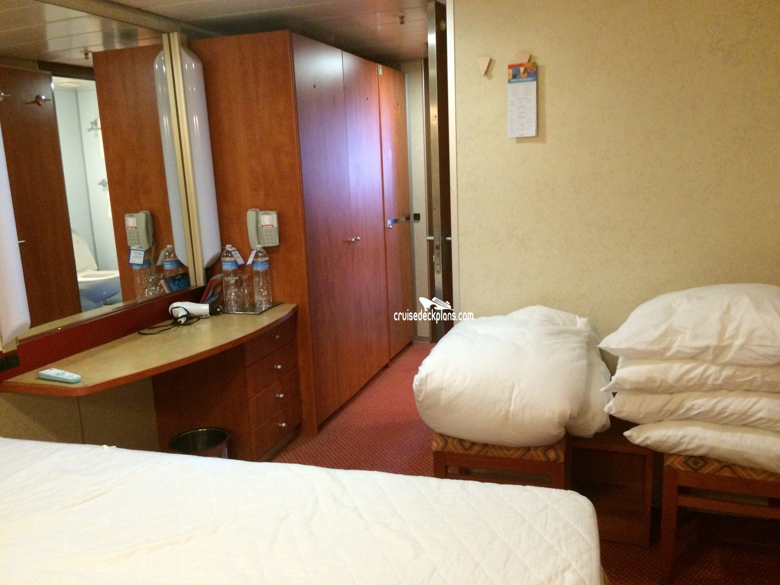 Carnival Inspiration Interior cabin number E15 ACTUAL videos and/or pictures, floor plans, diagrams and detailed features including a deck image of the actual location on the Carnival Inspiration ship for cabin E15. Cruisedeckplans.com has 74,453 different (staterooms) cabins that have actual cabin pictures and/or cabin videos taken by real cruisers. That is plenty of coverage to provide you with a good sampling of all the different cabins on cruise ships. Take a minute and notice the breadcrumb menu above. This is a quick easy way to navigate our website. You can also use the menu above for menu items specific to the Carnival Inspiration cruise ship.