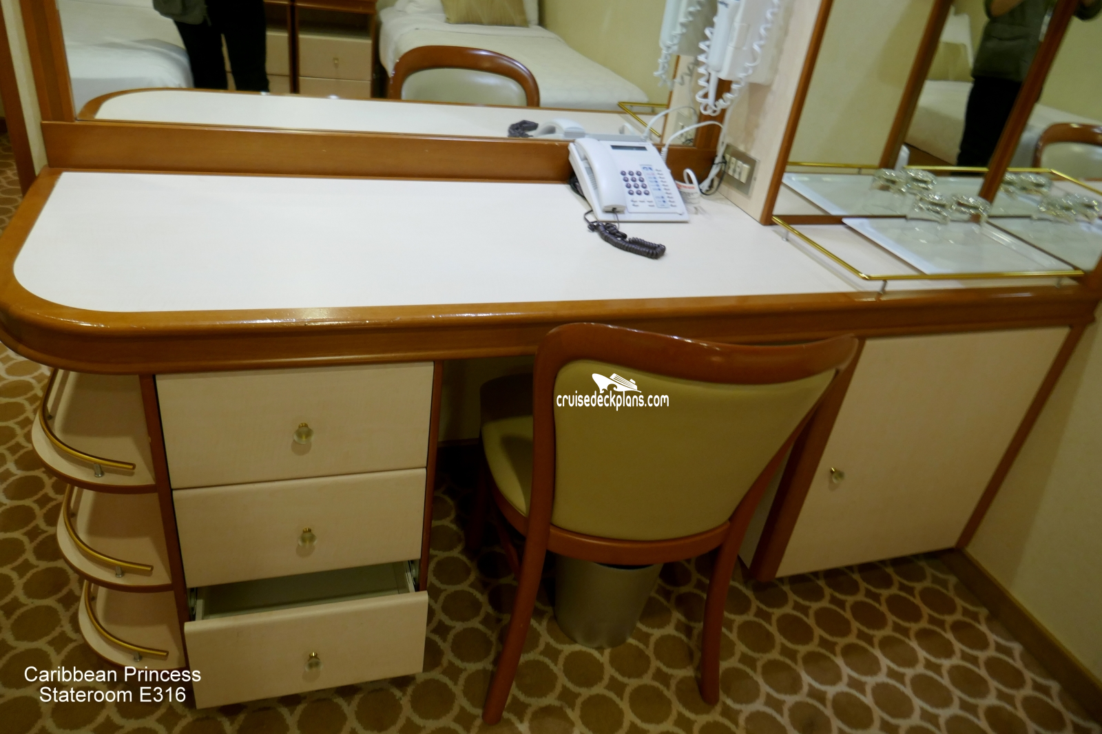 These are some actual stateroom pictures of cabin E316 on the Caribbean Princess. Click on images below for larger image and slide show. The slide show will show the date the picture was uploaded to out website. This date is useful because Caribbean Princess typically will update its cabins every three to five years with new carpeting and decor. We will keep older pictures for you to compare the more recent photos to. The pictures are sorted by the newest ones first. Most of our cabin pictures are contributed by actual cruisers. We pay 50 cents for any that we use. You can upload your cabin photos HERE. Afer you are done looking at these photos and/or the videos below you can click here to select another cabin.