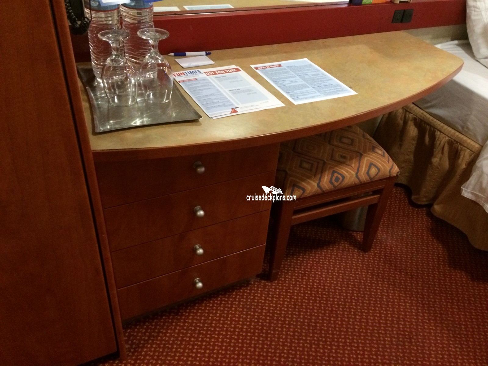 These are some actual stateroom pictures of cabin E49 on the Carnival Inspiration. Click on images below for larger image and slide show. The slide show will show the date the picture was uploaded to out website. This date is useful because Carnival Inspiration typically will update its cabins every three to five years with new carpeting and decor. We will keep older pictures for you to compare the more recent photos to. The pictures are sorted by the newest ones first. Most of our cabin pictures are contributed by actual cruisers. We pay 50 cents for any that we use. You can upload your cabin photos HERE. Afer you are done looking at these photos and/or the videos below you can click here to select another cabin.