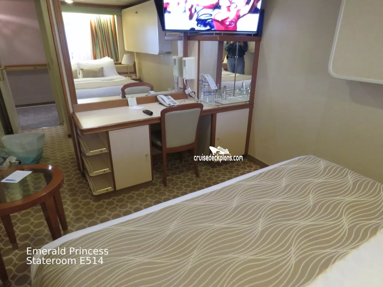 These are some actual stateroom pictures of cabin E514 on the Emerald Princess. Click on images below for larger image and slide show. The slide show will show the date the picture was uploaded to out website. This date is useful because Emerald Princess typically will update its cabins every three to five years with new carpeting and decor. We will keep older pictures for you to compare the more recent photos to. The pictures are sorted by the newest ones first. Most of our cabin pictures are contributed by actual cruisers. We pay 50 cents for any that we use. You can upload your cabin photos HERE. Afer you are done looking at these photos and/or the videos below you can click here to select another cabin.