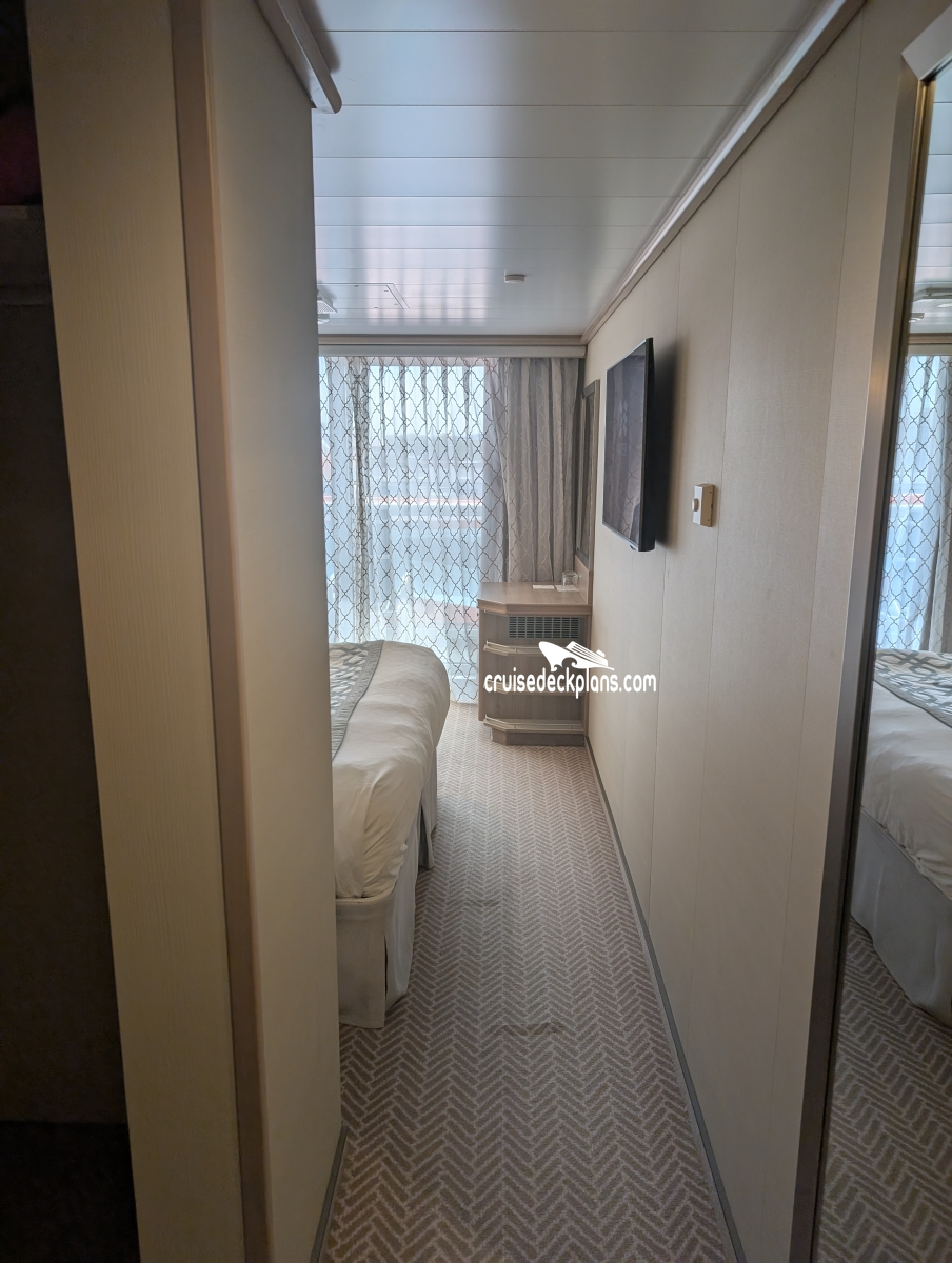 IMPORTANT NOTE: Category BV, BW, BY, BZ have obstructed view due to solid steel railings or top of lifeboats. When upper berth is used in cabins that sleep 3, the balcony door will be blocked. In cabins designed for 4 passengers, the two beds do not convert to queen if upper berths being used.