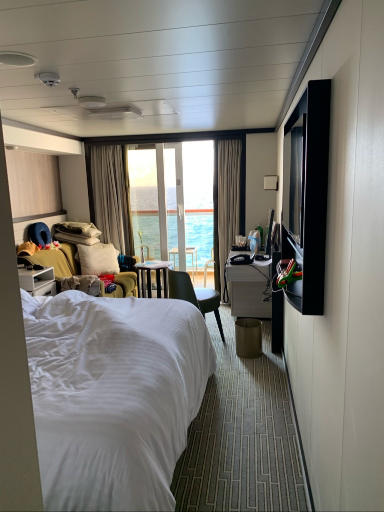 IMPORTANT NOTE: Category JB, JC, JE have obstructed view due to solid steel railings or top of lifeboats. When upper berth is used in cabins that sleep 3, the balcony door will be blocked. In cabins designed for 4 passengers, the two beds do not convert to queen if upper berths being used.