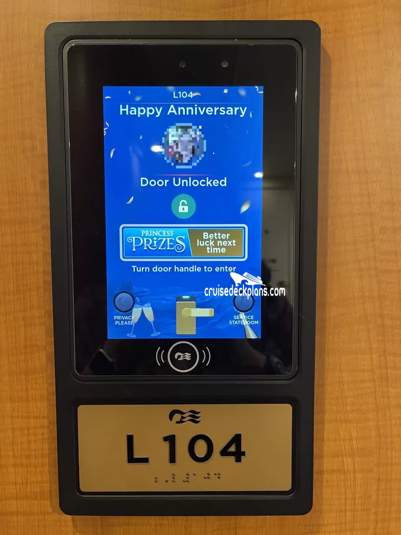 Majestic Princess Deluxe Balcony cabin number L104 ACTUAL videos and/or pictures, floor plans, diagrams and detailed features including a deck image of the actual location on the Majestic Princess ship for cabin L104. Cruisedeckplans.com has 74,582 different (staterooms) cabins that have actual cabin pictures and/or cabin videos taken by real cruisers. That is plenty of coverage to provide you with a good sampling of all the different cabins on cruise ships. Take a minute and notice the breadcrumb menu above. This is a quick easy way to navigate our website. You can also use the menu above for menu items specific to the Majestic Princess cruise ship.