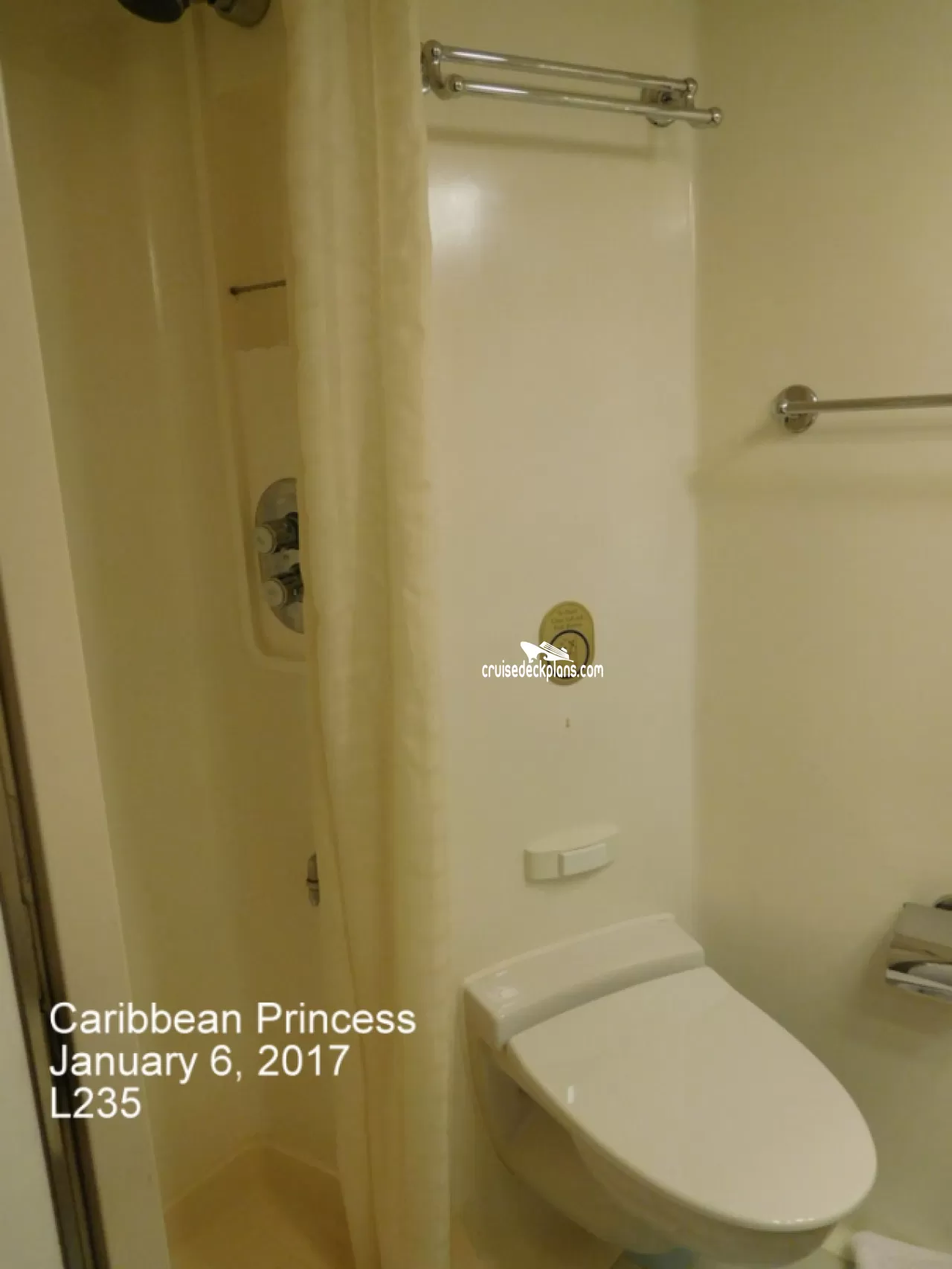 These are some actual stateroom pictures of cabin L235 on the Caribbean Princess. Click on images below for larger image and slide show. The slide show will show the date the picture was uploaded to out website. This date is useful because Caribbean Princess typically will update its cabins every three to five years with new carpeting and decor. We will keep older pictures for you to compare the more recent photos to. The pictures are sorted by the newest ones first. Most of our cabin pictures are contributed by actual cruisers. We pay 50 cents for any that we use. You can upload your cabin photos HERE. Afer you are done looking at these photos and/or the videos below you can click here to select another cabin.