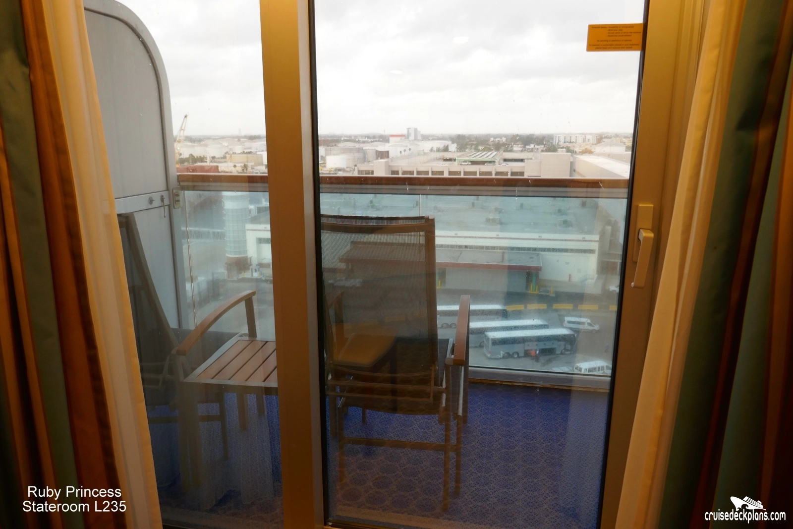 Ruby Princess Balcony cabin number L235 ACTUAL videos and/or pictures, floor plans, diagrams and detailed features including a deck image of the actual location on the Ruby Princess ship for cabin L235. Cruisedeckplans.com has 73,878 different (staterooms) cabins that have actual cabin pictures and/or cabin videos taken by real cruisers. That is plenty of coverage to provide you with a good sampling of all the different cabins on cruise ships. Take a minute and notice the breadcrumb menu above. This is a quick easy way to navigate our website. You can also use the menu above for menu items specific to the Ruby Princess cruise ship.