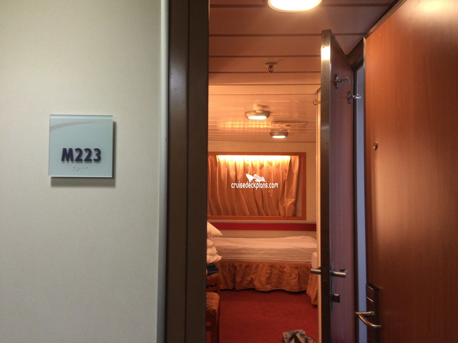 Carnival Imagination Interior cabin number M223 ACTUAL videos and/or pictures, floor plans, diagrams and detailed features including a deck image of the actual location on the Carnival Imagination ship for cabin M223. Cruisedeckplans.com has 74,123 different (staterooms) cabins that have actual cabin pictures and/or cabin videos taken by real cruisers. That is plenty of coverage to provide you with a good sampling of all the different cabins on cruise ships. Take a minute and notice the breadcrumb menu above. This is a quick easy way to navigate our website. You can also use the menu above for menu items specific to the Carnival Imagination cruise ship.