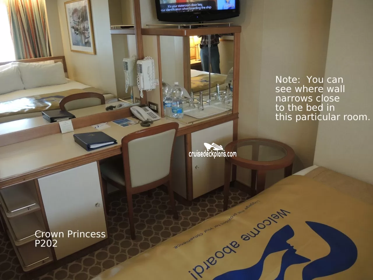 These are some actual stateroom pictures of cabin P202 on the Crown Princess. Click on images below for larger image and slide show. The slide show will show the date the picture was uploaded to out website. This date is useful because Crown Princess typically will update its cabins every three to five years with new carpeting and decor. We will keep older pictures for you to compare the more recent photos to. The pictures are sorted by the newest ones first. Most of our cabin pictures are contributed by actual cruisers. We pay 50 cents for any that we use. You can upload your cabin photos HERE. Afer you are done looking at these photos and/or the videos below you can click here to select another cabin.