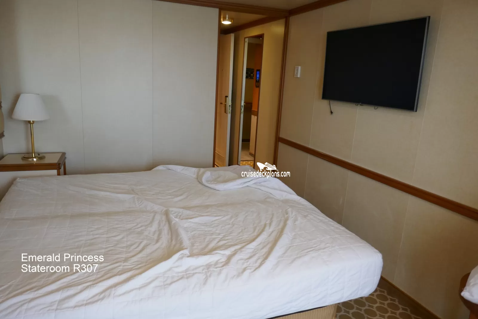 These are some actual stateroom pictures of cabin R307 on the Emerald Princess. Click on images below for larger image and slide show. The slide show will show the date the picture was uploaded to out website. This date is useful because Emerald Princess typically will update its cabins every three to five years with new carpeting and decor. We will keep older pictures for you to compare the more recent photos to. The pictures are sorted by the newest ones first. Most of our cabin pictures are contributed by actual cruisers. We pay 50 cents for any that we use. You can upload your cabin photos HERE. Afer you are done looking at these photos and/or the videos below you can click here to select another cabin.