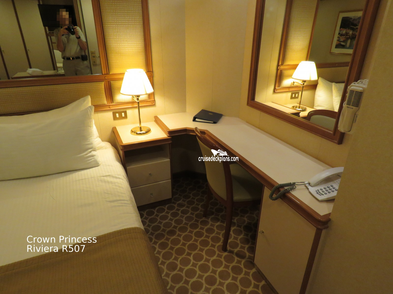 Crown Princess Interior cabin number R507 ACTUAL videos and/or pictures, floor plans, diagrams and detailed features including a deck image of the actual location on the Crown Princess ship for cabin R507. Cruisedeckplans.com has 74,053 different (staterooms) cabins that have actual cabin pictures and/or cabin videos taken by real cruisers. That is plenty of coverage to provide you with a good sampling of all the different cabins on cruise ships. Take a minute and notice the breadcrumb menu above. This is a quick easy way to navigate our website. You can also use the menu above for menu items specific to the Crown Princess cruise ship.