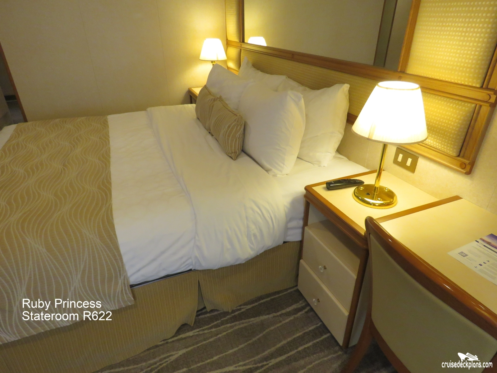 These are some actual stateroom pictures of cabin R622 on the Ruby Princess. Click on images below for larger image and slide show. The slide show will show the date the picture was uploaded to out website. This date is useful because Ruby Princess typically will update its cabins every three to five years with new carpeting and decor. We will keep older pictures for you to compare the more recent photos to. The pictures are sorted by the newest ones first. Most of our cabin pictures are contributed by actual cruisers. We pay 50 cents for any that we use. You can upload your cabin photos HERE. Afer you are done looking at these photos and/or the videos below you can click here to select another cabin.