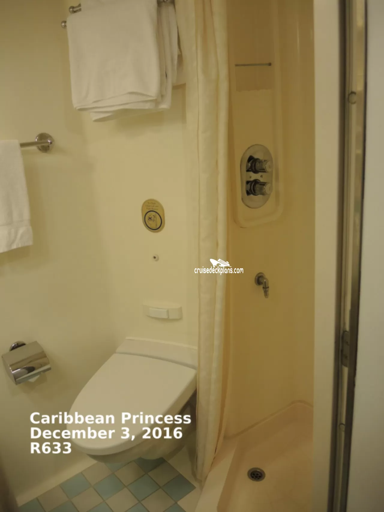Caribbean Princess Balcony cabin number R633 ACTUAL videos and/or pictures, floor plans, diagrams and detailed features including a deck image of the actual location on the Caribbean Princess ship for cabin R633. Cruisedeckplans.com has 74,162 different (staterooms) cabins that have actual cabin pictures and/or cabin videos taken by real cruisers. That is plenty of coverage to provide you with a good sampling of all the different cabins on cruise ships. Take a minute and notice the breadcrumb menu above. This is a quick easy way to navigate our website. You can also use the menu above for menu items specific to the Caribbean Princess cruise ship.