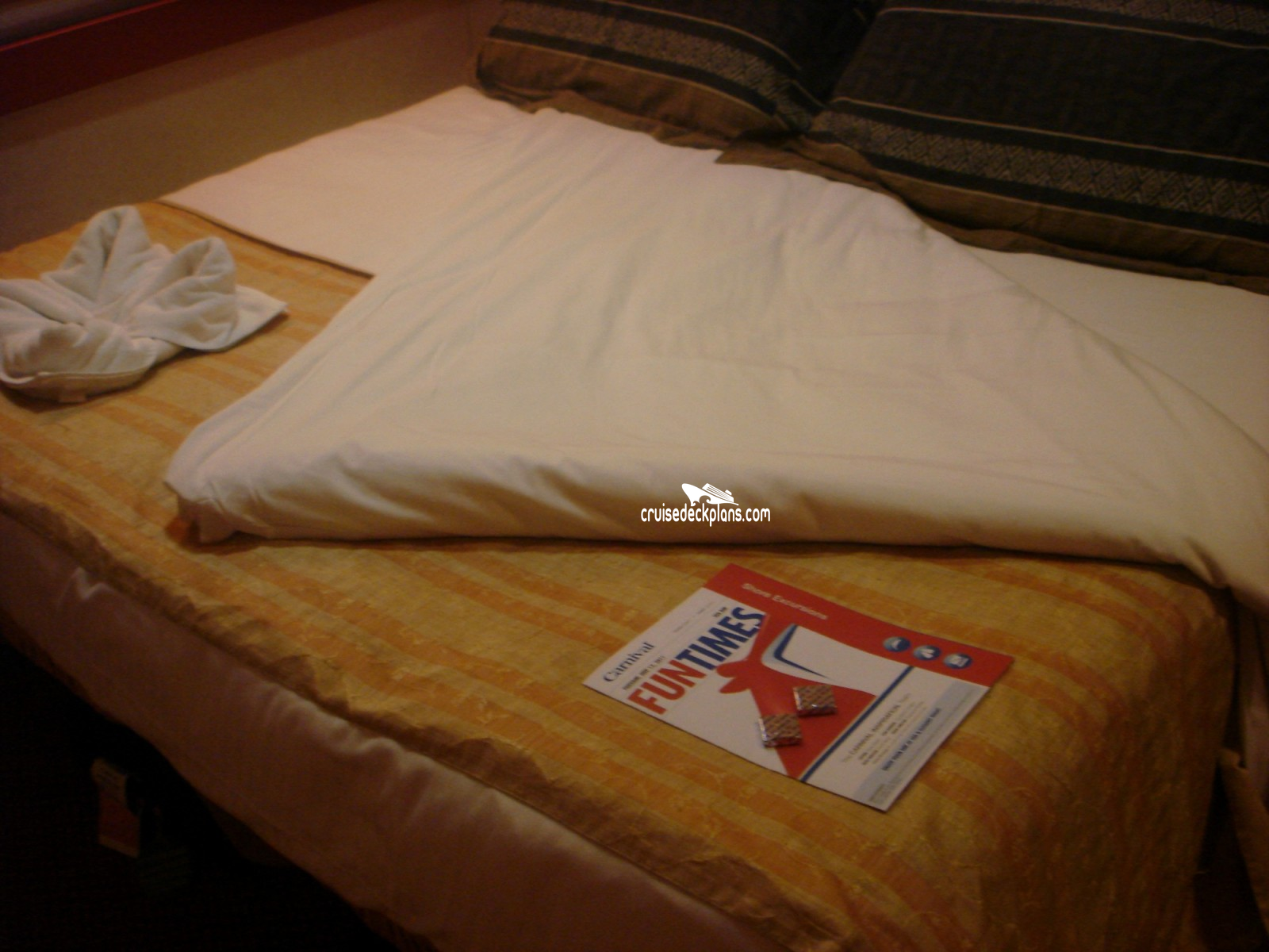 These are some actual stateroom pictures of cabin U18 on the Carnival Inspiration. Click on images below for larger image and slide show. The slide show will show the date the picture was uploaded to out website. This date is useful because Carnival Inspiration typically will update its cabins every three to five years with new carpeting and decor. We will keep older pictures for you to compare the more recent photos to. The pictures are sorted by the newest ones first. Most of our cabin pictures are contributed by actual cruisers. We pay 50 cents for any that we use. You can upload your cabin photos HERE. Afer you are done looking at these photos and/or the videos below you can click here to select another cabin.