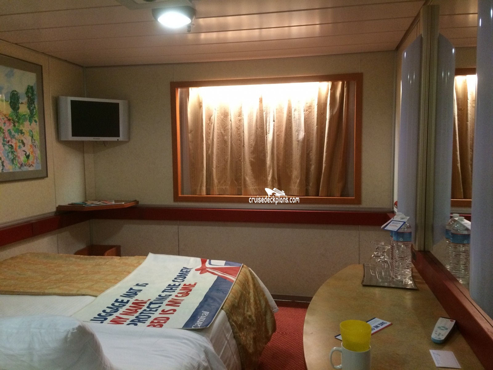 These are some actual stateroom pictures of cabin U78 on the Carnival Inspiration. Click on images below for larger image and slide show. The slide show will show the date the picture was uploaded to out website. This date is useful because Carnival Inspiration typically will update its cabins every three to five years with new carpeting and decor. We will keep older pictures for you to compare the more recent photos to. The pictures are sorted by the newest ones first. Most of our cabin pictures are contributed by actual cruisers. We pay 50 cents for any that we use. You can upload your cabin photos HERE. Afer you are done looking at these photos and/or the videos below you can click here to select another cabin.