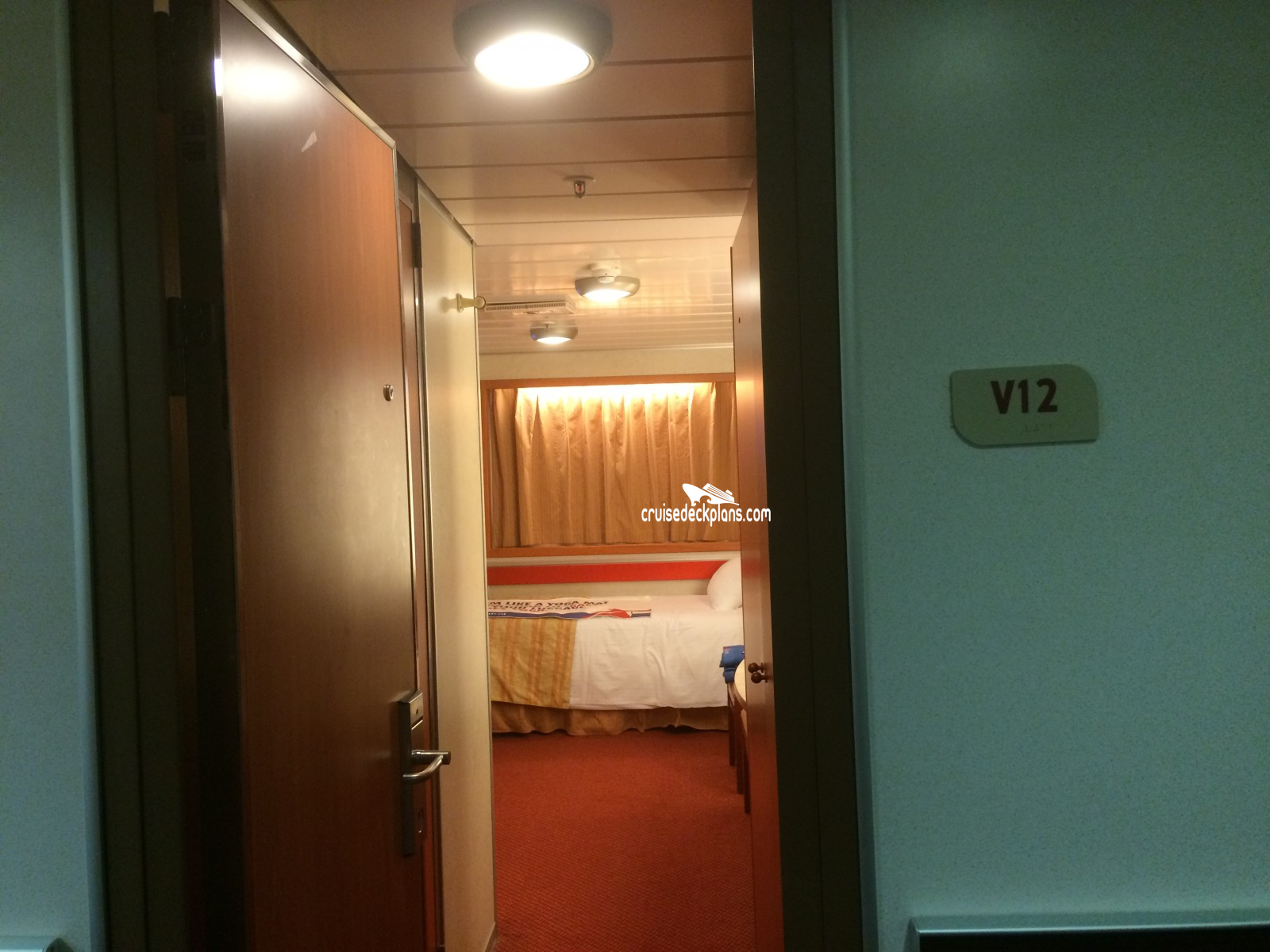 Carnival Imagination Interior cabin number V12 ACTUAL videos and/or pictures, floor plans, diagrams and detailed features including a deck image of the actual location on the Carnival Imagination ship for cabin V12. Cruisedeckplans.com has 74,583 different (staterooms) cabins that have actual cabin pictures and/or cabin videos taken by real cruisers. That is plenty of coverage to provide you with a good sampling of all the different cabins on cruise ships. Take a minute and notice the breadcrumb menu above. This is a quick easy way to navigate our website. You can also use the menu above for menu items specific to the Carnival Imagination cruise ship.