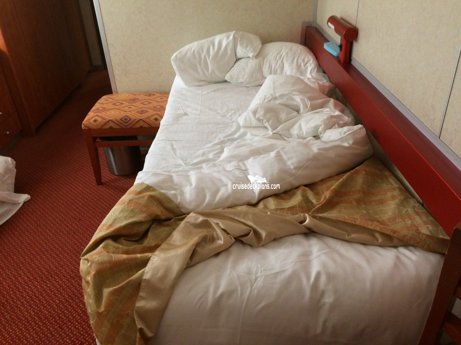 These are some actual stateroom pictures of cabin V12 on the Carnival Inspiration. Click on images below for larger image and slide show. The slide show will show the date the picture was uploaded to out website. This date is useful because Carnival Inspiration typically will update its cabins every three to five years with new carpeting and decor. We will keep older pictures for you to compare the more recent photos to. The pictures are sorted by the newest ones first. Most of our cabin pictures are contributed by actual cruisers. We pay 50 cents for any that we use. You can upload your cabin photos HERE. Afer you are done looking at these photos and/or the videos below you can click here to select another cabin.