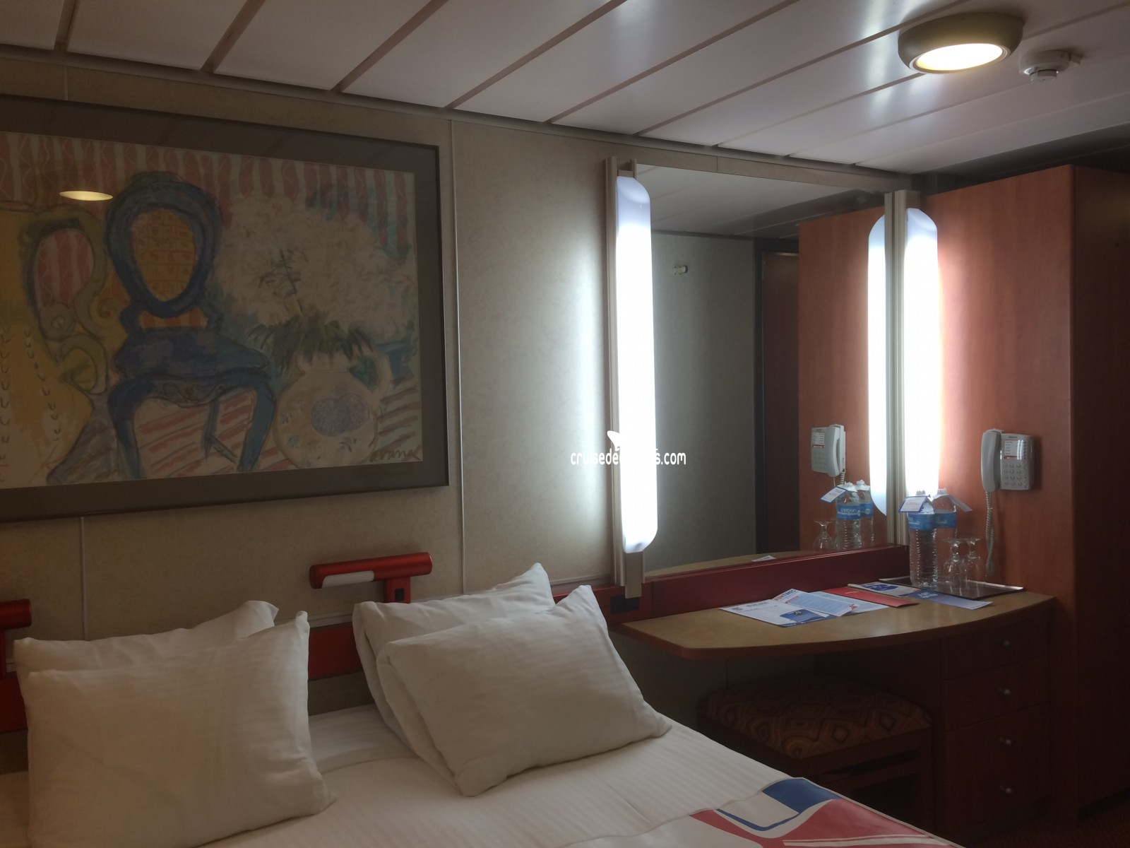 These are some actual stateroom pictures of cabin V40 on the Carnival Inspiration. Click on images below for larger image and slide show. The slide show will show the date the picture was uploaded to out website. This date is useful because Carnival Inspiration typically will update its cabins every three to five years with new carpeting and decor. We will keep older pictures for you to compare the more recent photos to. The pictures are sorted by the newest ones first. Most of our cabin pictures are contributed by actual cruisers. We pay 50 cents for any that we use. You can upload your cabin photos HERE. Afer you are done looking at these photos and/or the videos below you can click here to select another cabin.