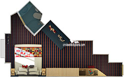 Category FJ cabins with two uppers berths, lower twin beds do not convert when both uppers are in use.Stateroom Cabin Perks