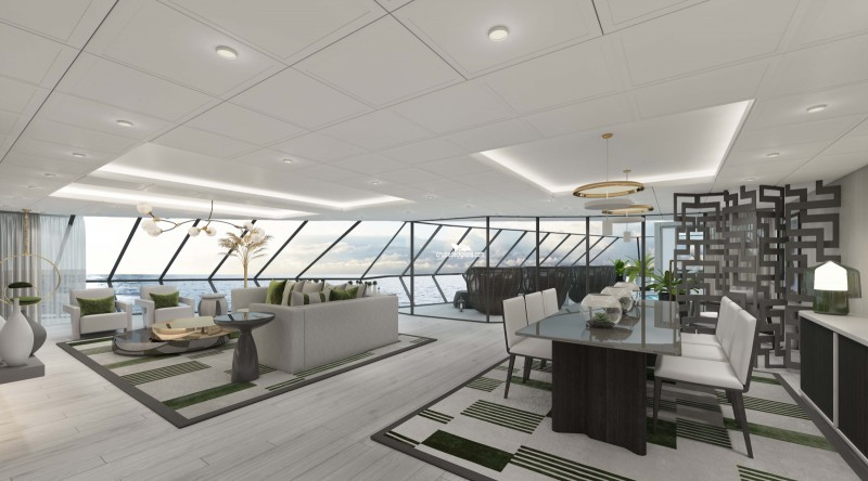 - Two room suite- Living and dining area with floor to ceiling panoramic windows