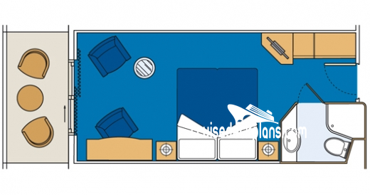 Midship Balconies are larger. Forward and Aft balconies are around 126 square feet plus 40 square foot balcony. Category BR1 sleeps up to 3. Category BM1 and BM2 sleep up to 2. All others sleep up to 4.Stateroom Cabin Perks