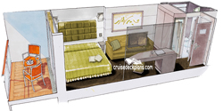 Smaller inside cabins are 131 square feet.Stateroom Cabin Perks