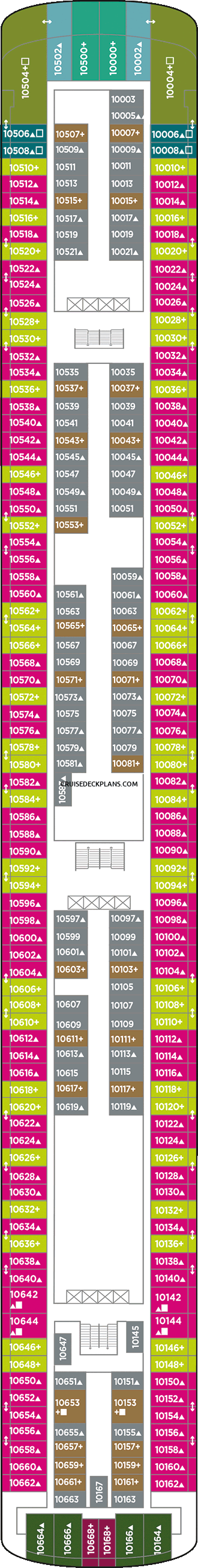 Click deck pictures to go to individual cruise deck plan pages where you can see all the public areas, venues and stateroom cabins categories for each deck.