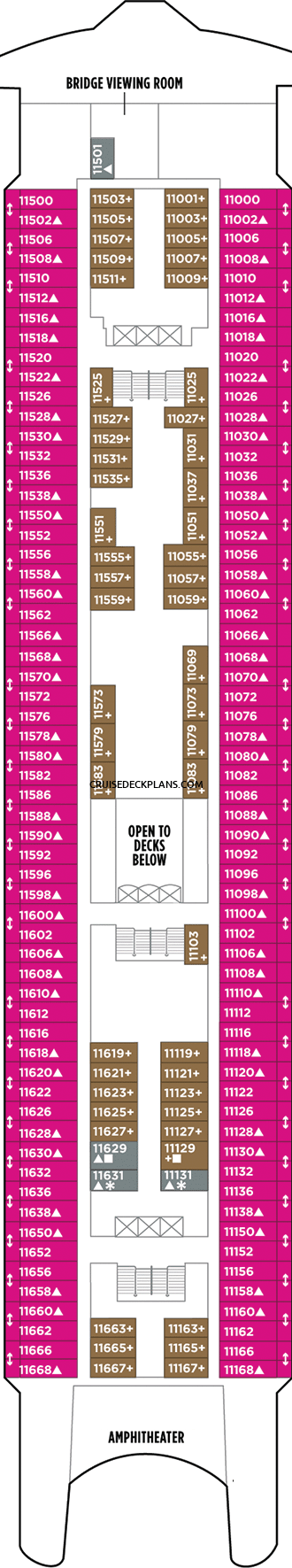 Click deck pictures to go to individual cruise deck plan pages where you can see all the public areas, venues and stateroom cabins categories for each deck.