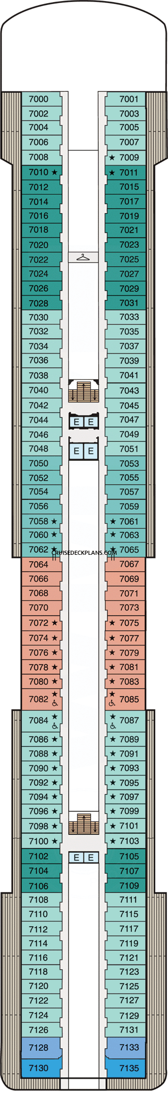 Click deck pictures to go to individual cruise deck plan pages where you can see all the public areas, venues and stateroom cabins categories for each deck.