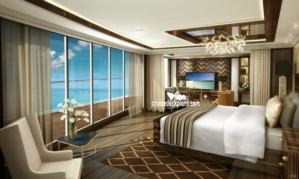 Suite size ranges from 1000 to 1013 square feet. Balcony size ranges from 277 to 336 square feet.Stateroom Cabin Perks