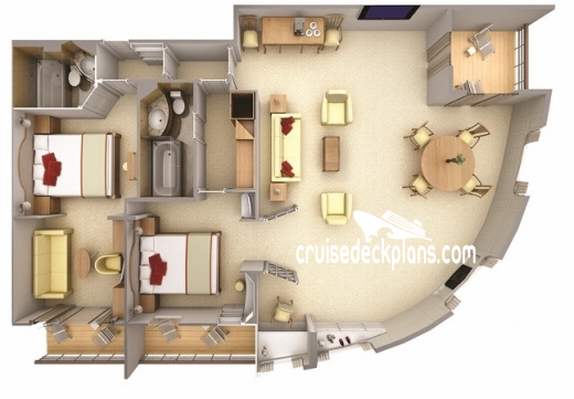 Add another 295 square feet plus 49 square foot balcony for two bedroom.Stateroom Cabin Perks