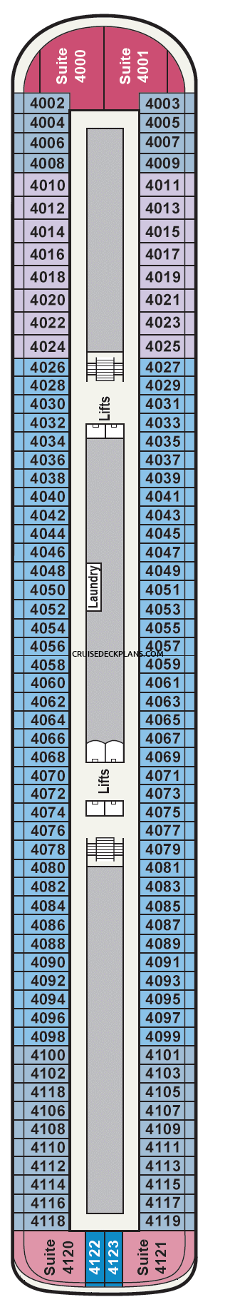 Click deck pictures to go to individual cruise deck plan pages where you can see all the public areas, venues and stateroom cabins categories for each deck.