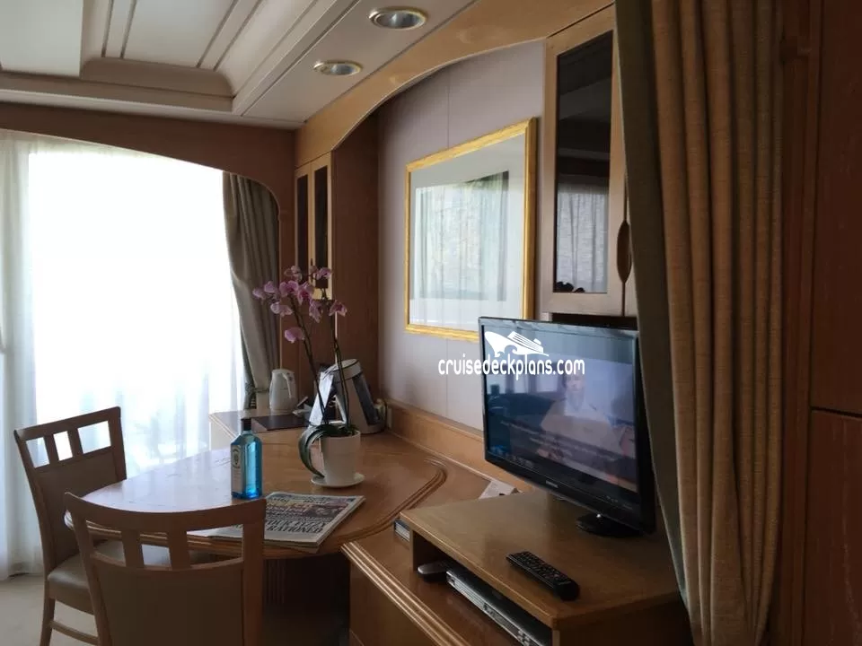Aurora Mini-Suite cabin location, stateroom cabin videos, stateroom cabin pictures, floor plans, diagrams, stateroom features and perks. Cruisedeckplans.com also provides links to actual stateroom cabin pictures and videos on this page. You can see details and floor plans for all of Aurora's different stateroom cabin categories on the NEW cabins page.