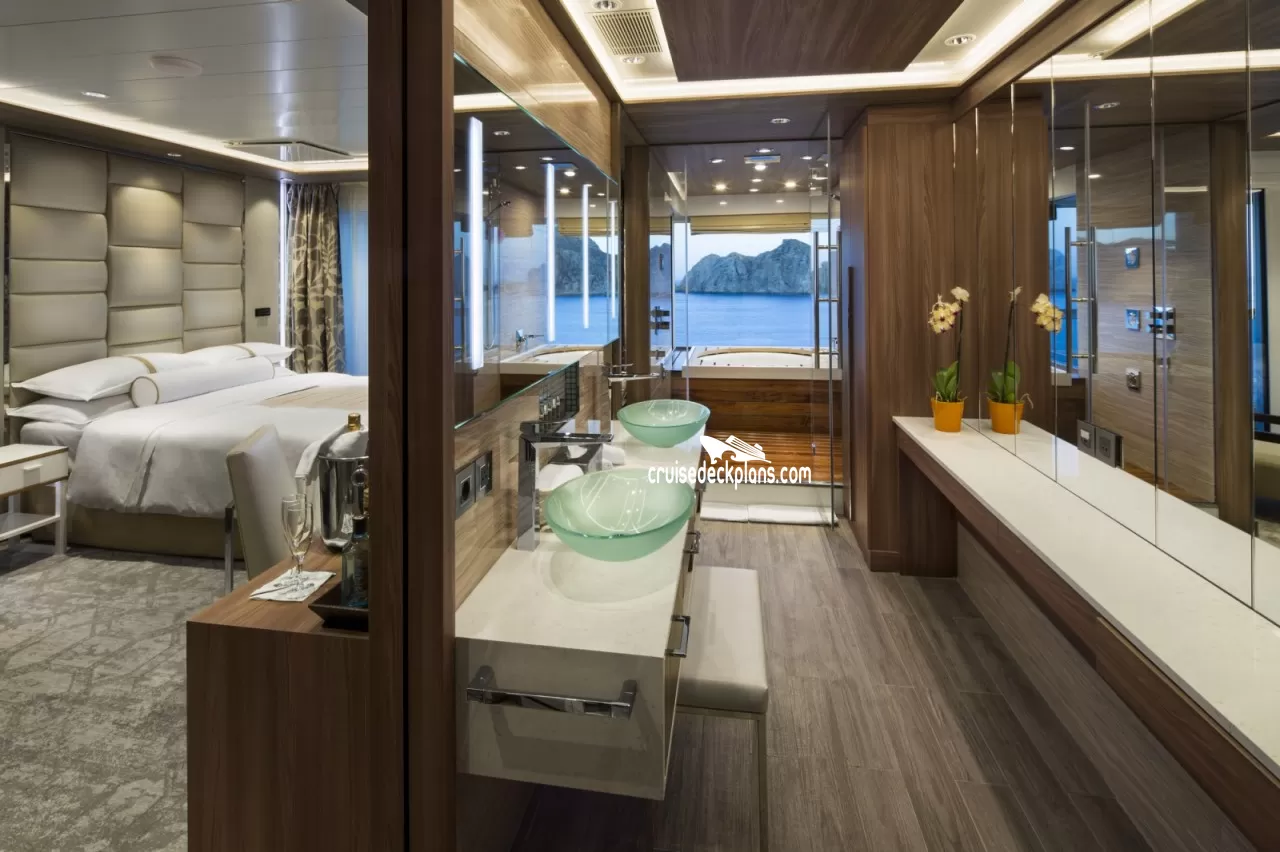 Azamara Pursuit Club Spa Suite cabin location, stateroom cabin videos, stateroom cabin pictures, floor plans, diagrams, stateroom features and perks. Cruisedeckplans.com also provides links to actual stateroom cabin pictures and videos on this page. You can see details and floor plans for all of Azamara Pursuit's different stateroom cabin categories on the NEW cabins page.