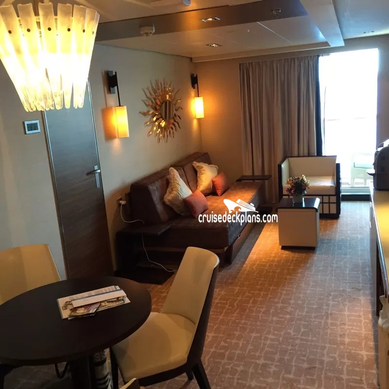 Butler Service / Concierge Service / Priority Check In / Priority Debarkation / Priority Tender Boarding / Dining in the Stateroom / Welcome Champagne / Exclusive Lounge / Exclusive Pool / Exclusive Outdoor Lounge / Thick Cotton Robes / Pillow Menu / Espresso & Cappuccino machine / Special suite menus / Bliss collection pillow-top mattress / Treats delivered to door every night / Courtyard valet / Escort to suite /