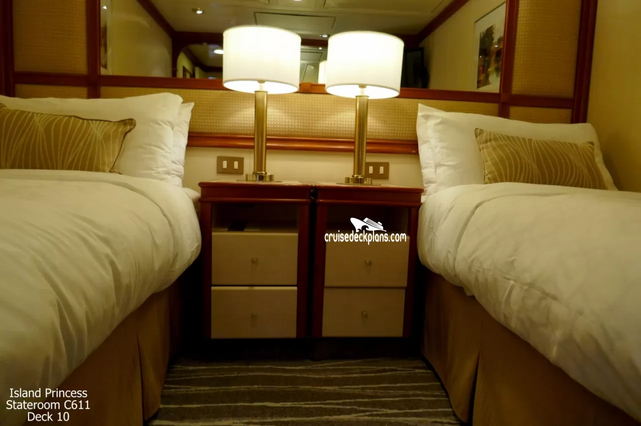 Island Princess Interior cabin location, stateroom cabin videos, stateroom cabin pictures, floor plans, diagrams, stateroom features and perks. Cruisedeckplans.com also provides links to actual stateroom cabin pictures and videos on this page. You can see details and floor plans for all of Island Princess's different stateroom cabin categories on the NEW cabins page.