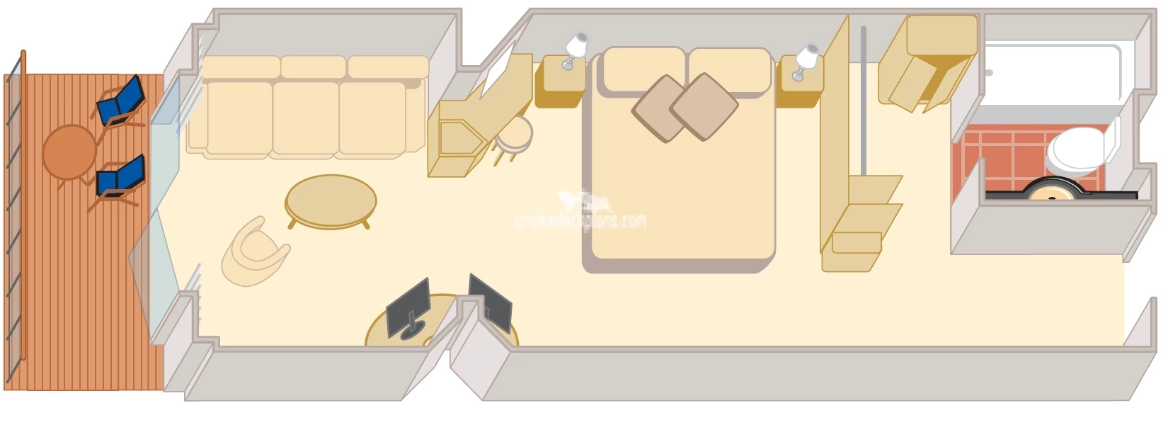 Queen Victoria Princess Suite cabin location, stateroom cabin videos, stateroom cabin pictures, floor plans, diagrams, stateroom features and perks. Cruisedeckplans.com also provides links to actual stateroom cabin pictures and videos on this page. You can see details and floor plans for all of Queen Victoria's different stateroom cabin categories on the NEW cabins page.