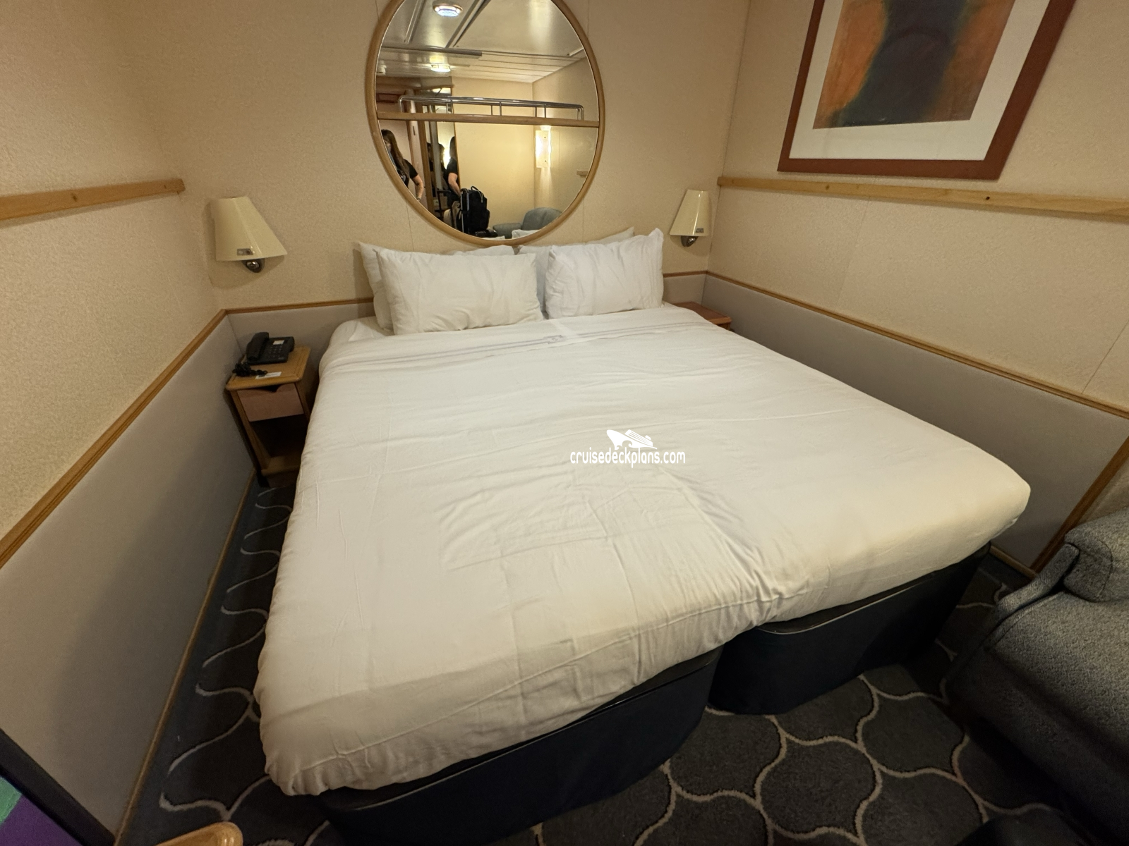 - Two lower twin beds that convert to Royal King- Double sofa bed for quad staterooms