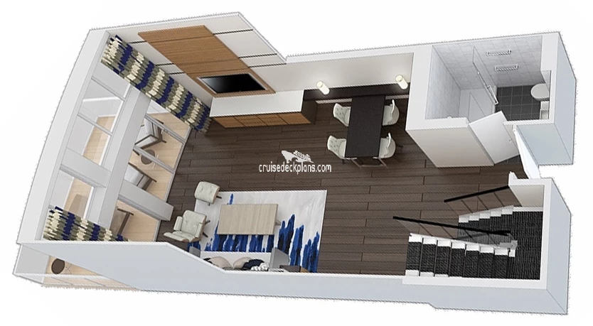 - Two-deck-high stateroom with panoramic views