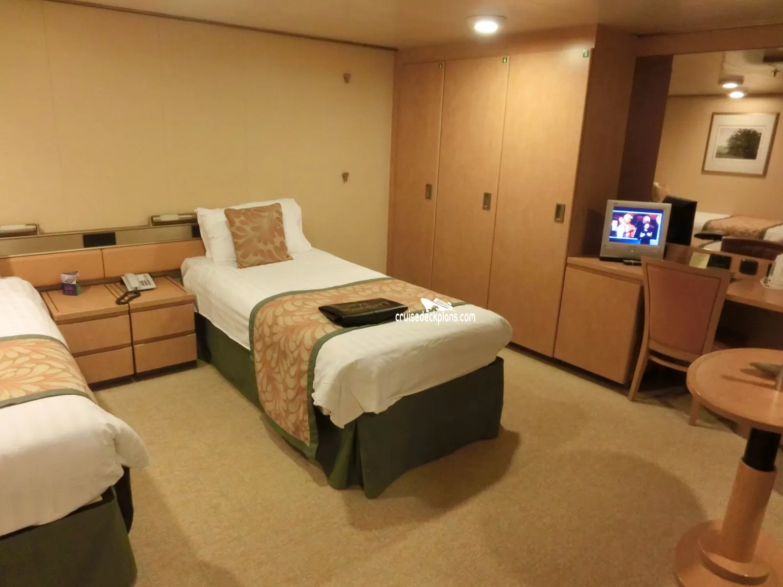 Built in 2005, the P&O Cruises UK Arcadia internal volume is 84K tons and has 952 staterooms for up to 1904 passengers served by 880 crew. There are 11 passenger decks, 7 with cabins. You can expect a space ratio of 44 gross tons per passenger on this ship. On this page are the current deck plans for Arcadia showing deck plan layouts, public venues and all the types of cabins including pictures and videos.