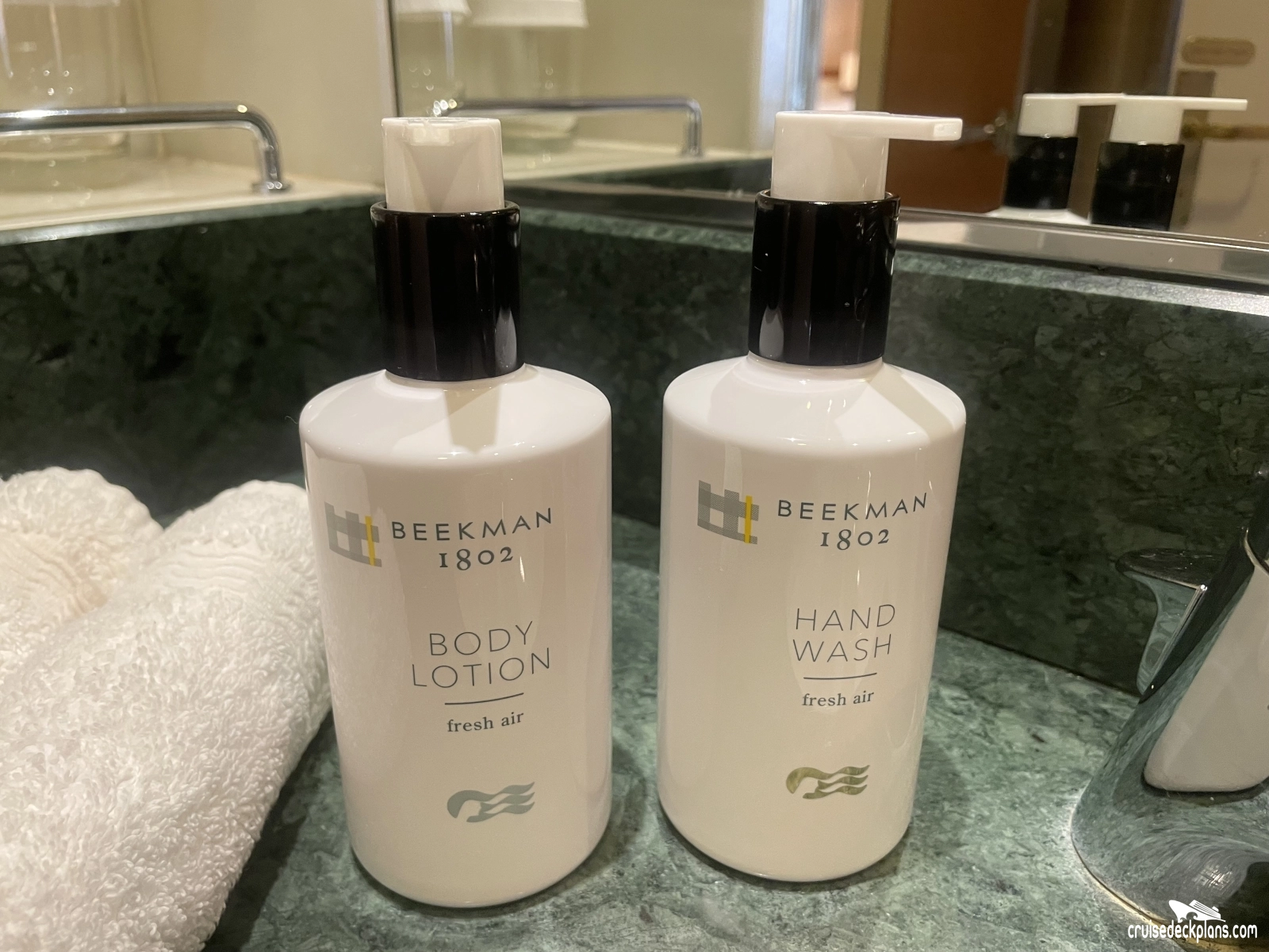 Priority Check In / Priority Debarkation / Priority Tender Boarding / Dining in the Stateroom / Afternoon Canapes / Afternoon Tea / Welcome Champagne / Exclusive Lounge / Exclusive Full Breakfast Restaurant / Priority Dining Reservations / Complimentary Laundry / Complimentary Photo(s) / Thick Cotton Robes / Pillow Menu / Upgraded balcony furniture including loungers, dining tables and chairs / complimentary mini-bar set-up / CD/DVD player with access to complimentary DVD library / Pillow-top mattress / Egyptian cotton high thread bed linens / fresh orchid in stateroom / upgraded bathroom amenities including bath salts and soothing gel eye mask / private lounge at the conclusion of the cruise / priority shore excursion reservations / priority line at service desk / use of Lotus Spa Thermal Suite / exclusive suite breakfast in Sabatinis (includes Mimosa) / exclusive elite lounge with hors d'oeuvres / extended room service menu with full menu offerings / complimentary cover charge for specialty restarants on embarkation evening / Chefs welcome goodies on embarkation day / complimentary flower corsage and boutonniere on first formal night / turndown service includes chocolate dipped stawberries or wrapped chocolates /Amenities also include luxury towels, massage shower heads, complimentary bathroom amenities (shampoo, conditioner, body lotion, bath gel, plus new lip balm, gel eye mask, bath salts and loofah mitts), Complimentary mini-bar - one-time set up,, Halo light magnifying vanity mirrors on vanity, complimentary Princess tote bag, complimentary dry cleaning service,and complimentary internet access in on-board Internet Cafes (wireless internet connection not included). Upgraded room amenities including: ice bucket and tray, leather wallet for cruise card, high quality pen, combined clothes brush, lint remover and shoe horn, shoe cleaning mitt, sewing kit, white cloth laundry bag, black cloth shoe shining bag, umbrella and slippers for use during the cruise.